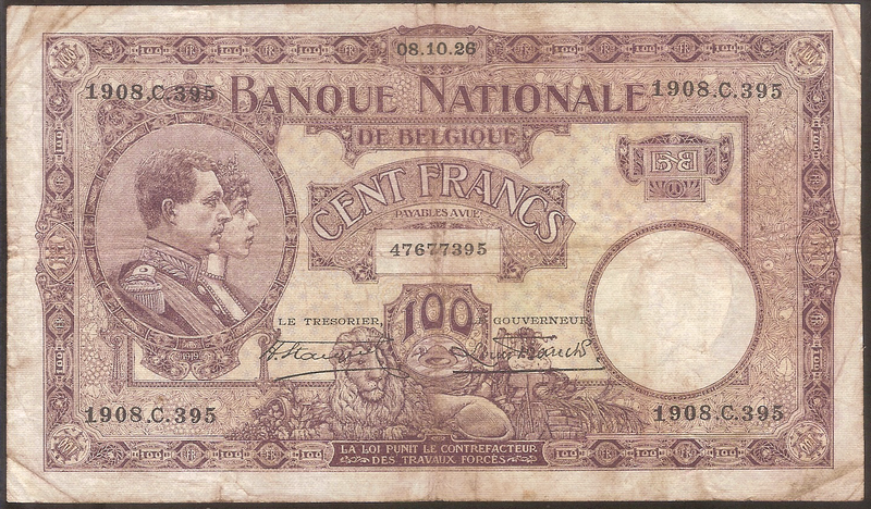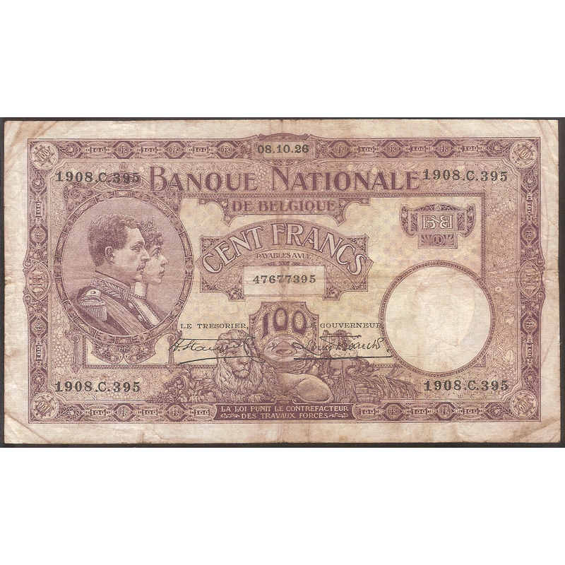 BELGIUM 100 Francs 08.10.1926
