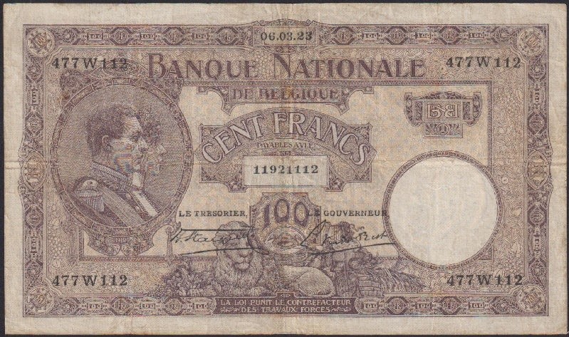 BELGIUM 100 Francs 06.03.1923