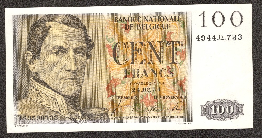 BELGIUM 100 Francs 24.02.1954