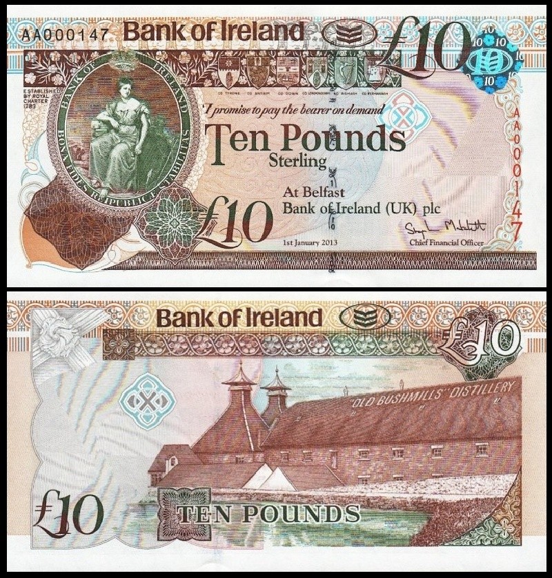 NORTHERN IRELAND 10 Pounds 2013 Low Serial Prefix AA