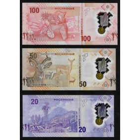 MOZAMBIQUE Set 3 Banknotes 20 + 50 + 100 Meticais 2024 Polymer UNC - Pick Set 2024 Prezzo 11,99 € Acquista Add to wishlist