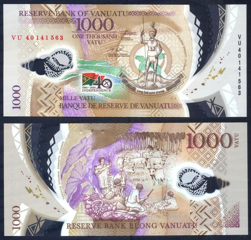 4. VANUATU 1000 Vatu 2020 Polymer Commemorative "40th Anniversary of Independence"