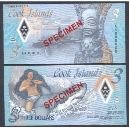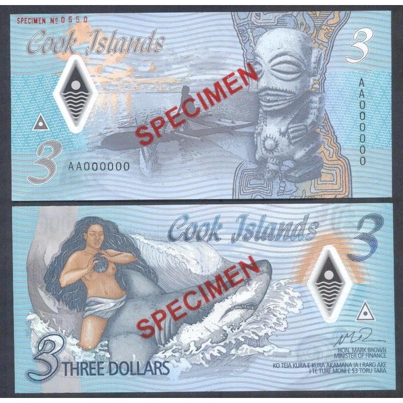 COOK ISLANDS 3 Dollars 2021 Polymer SPECIMEN