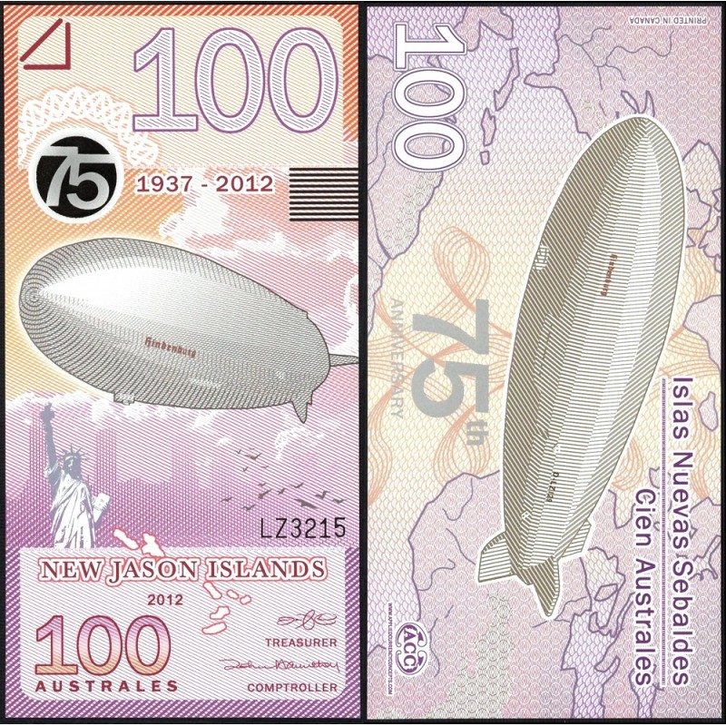 NEW JASON ISLANDS 100 Australes 2012 Commemorative "Hindenburg 75 years" CORRECT