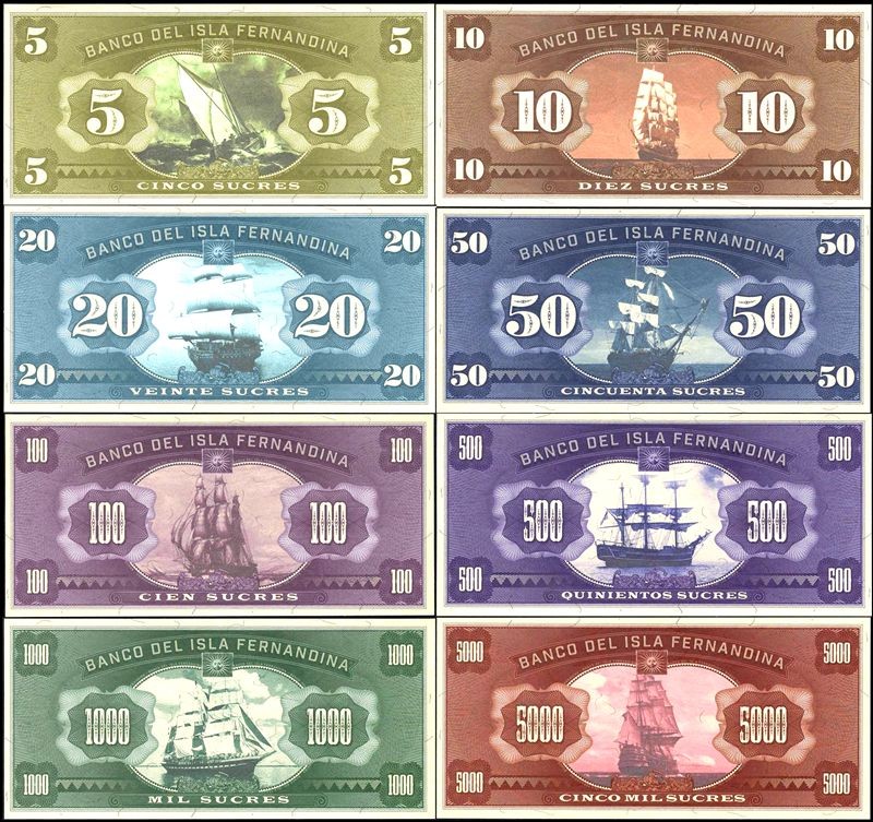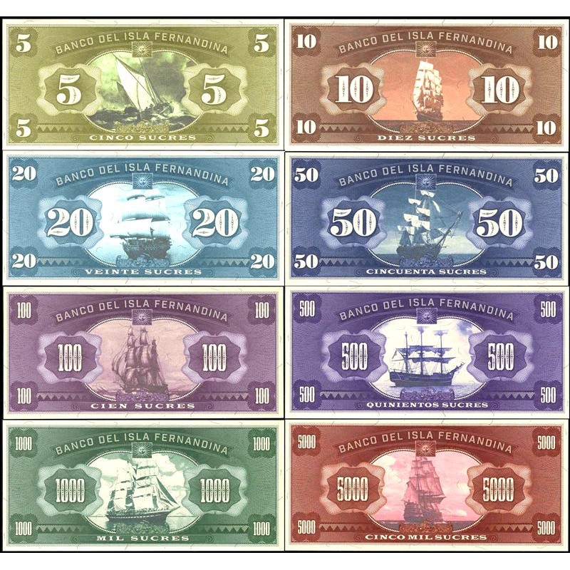 ISLA FERNANDINA (Ecuador) Set 8 Banknotes 5 to 5000 Sucres 2016