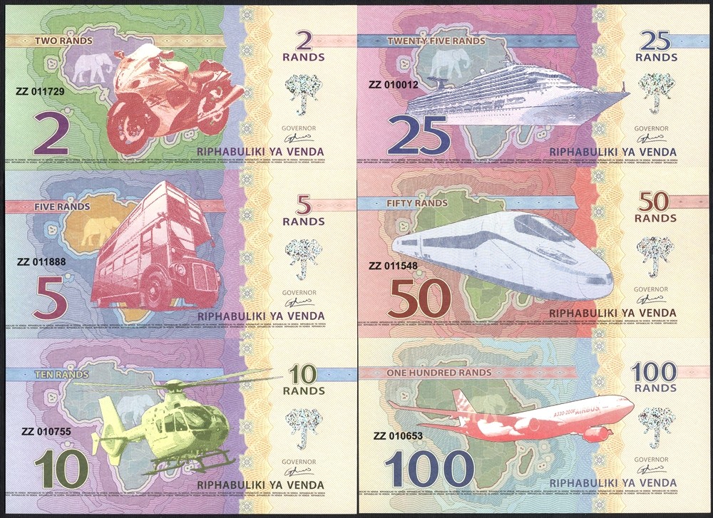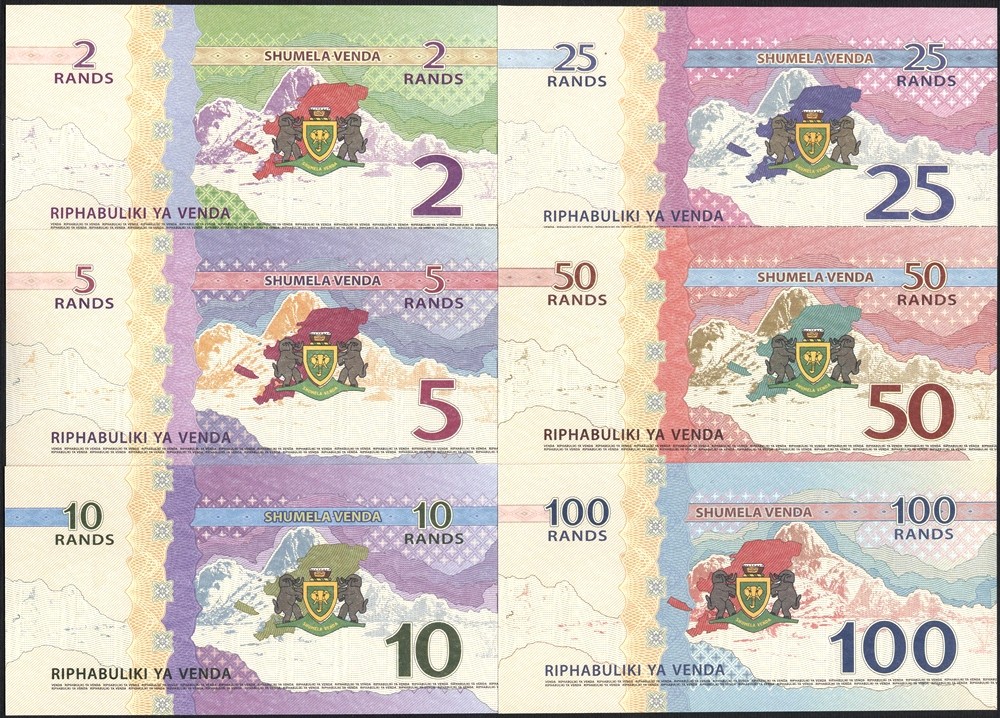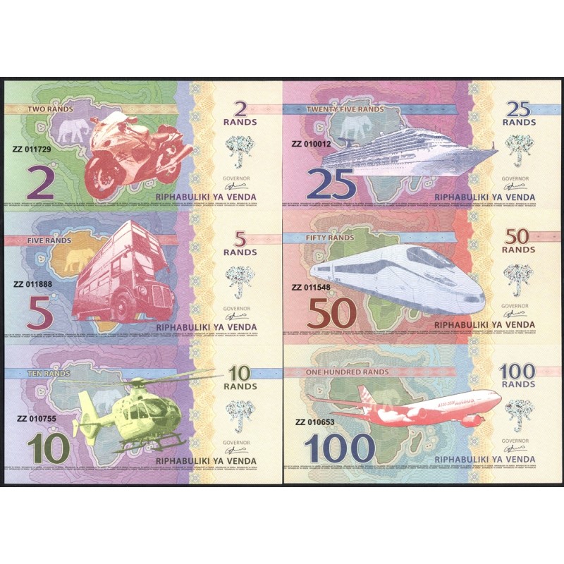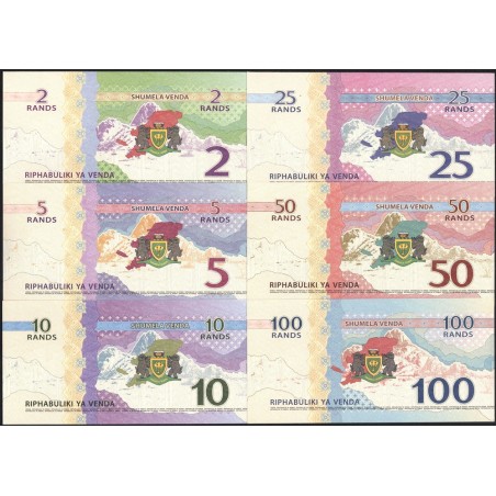 VENDA (South Africa) Set 6 Banknotes 2 to 100 Rands 2013