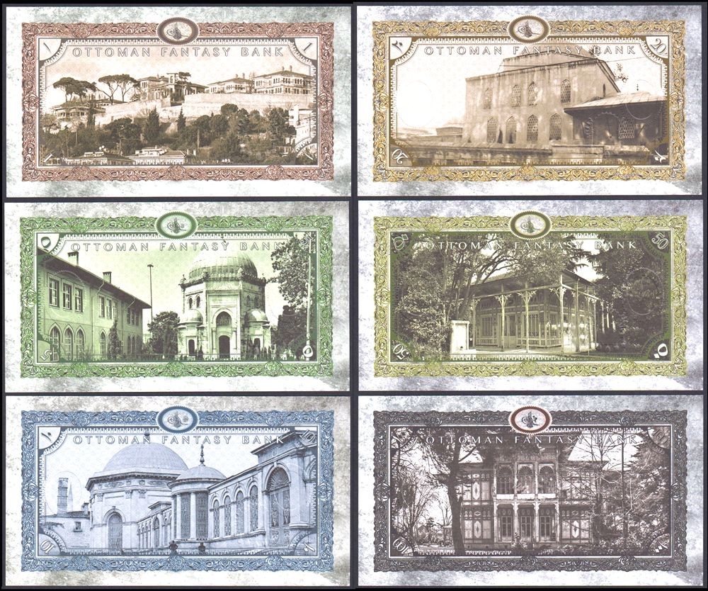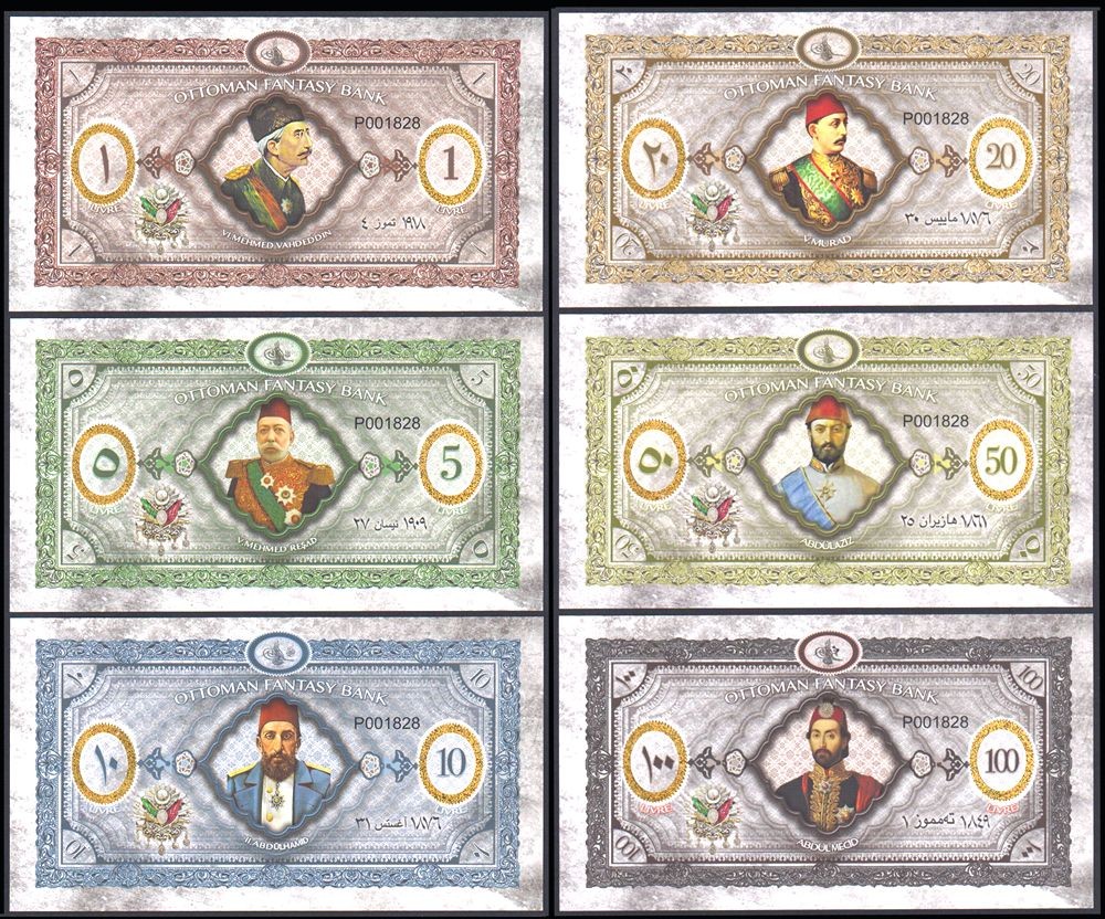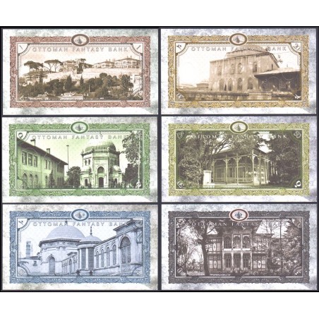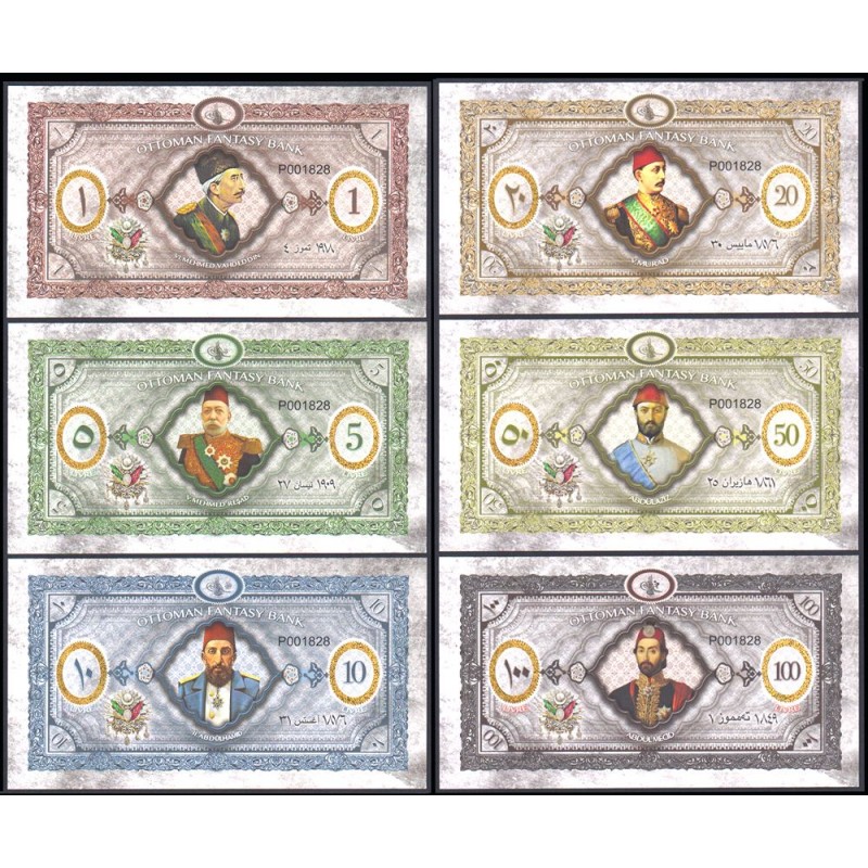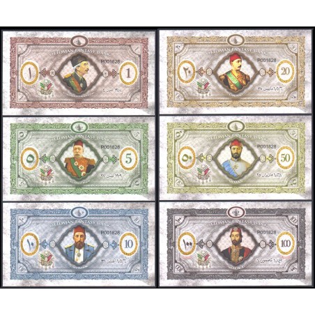 OTTOMAN EMPIRE Set 6 Banknotes 1 to 100 Livres 2020