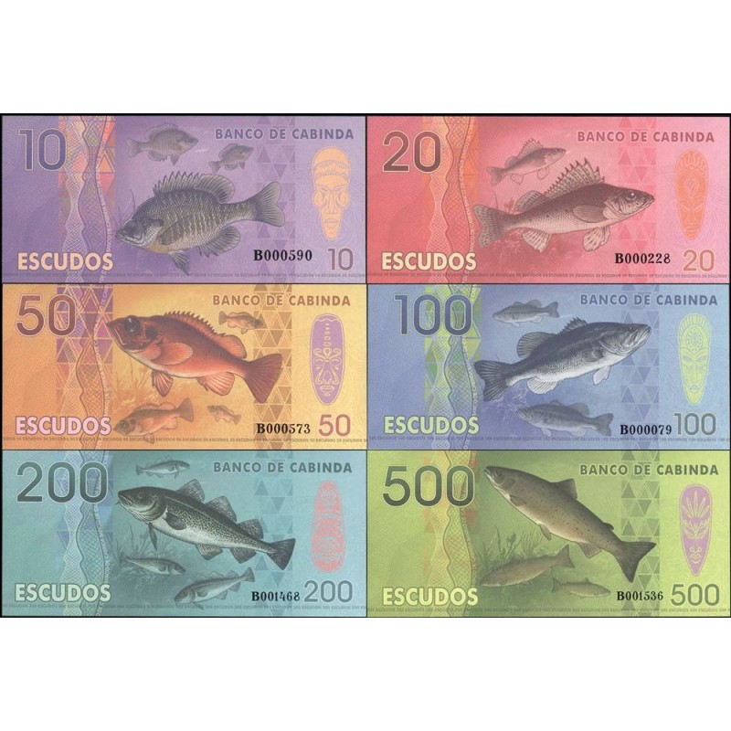 CABINDA (Angola) Set 6 Banknotes 10 to 500 Escudos 2015