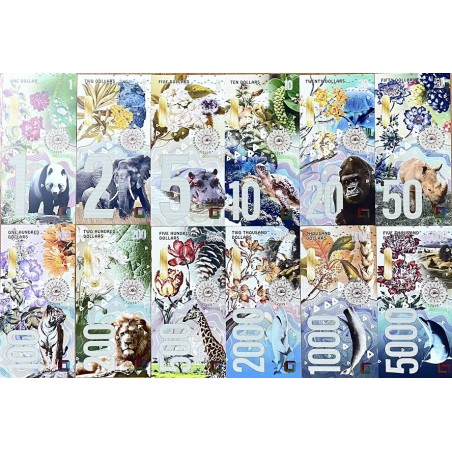 AURORA ISLAND Set 12 Banknotes 1 to 5000 Dollars 2020 Polymer