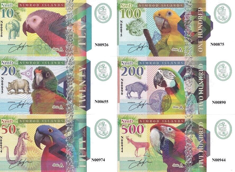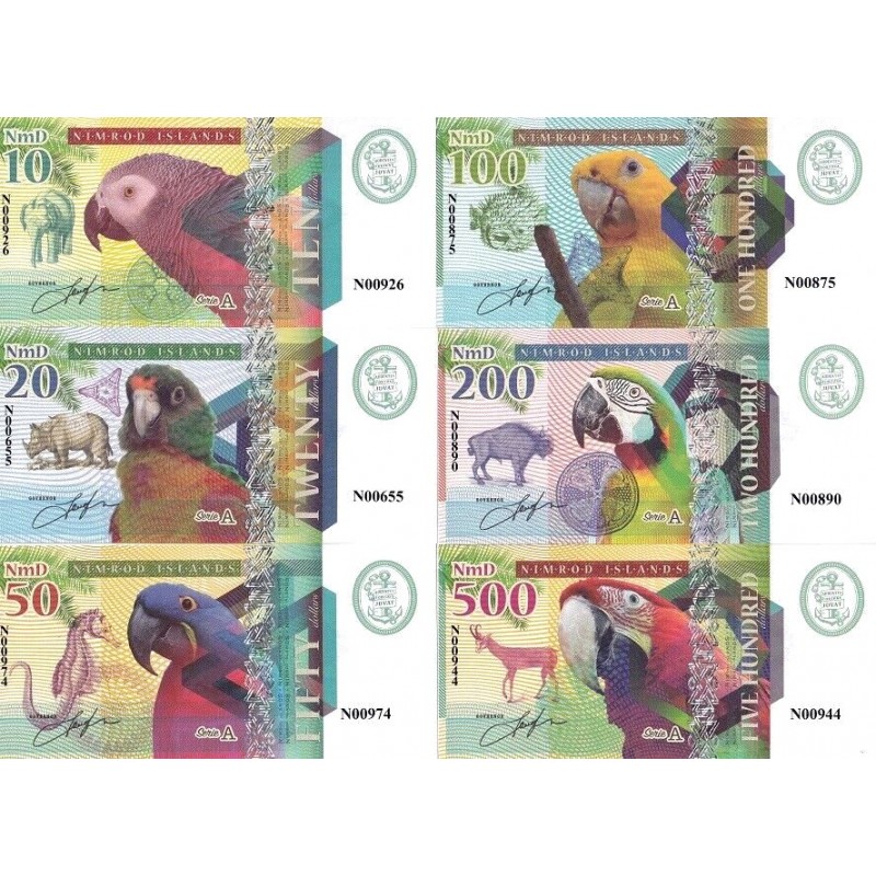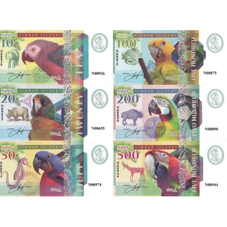 NIMROD ISLANDS Set 6 Banknotes 10 to 500 Dollars 2018