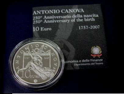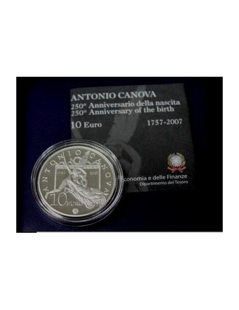 ITALIA 10 EURO 2007 A. CANOVA AG PROOF
