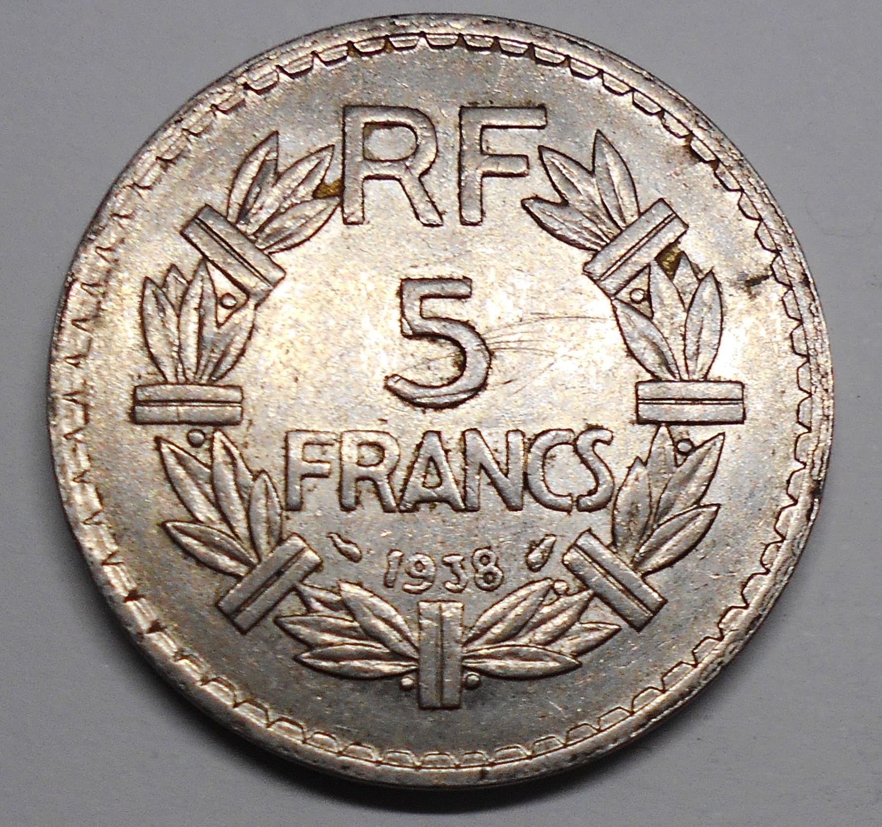 FRANCE 5 Francs 1938 nickel