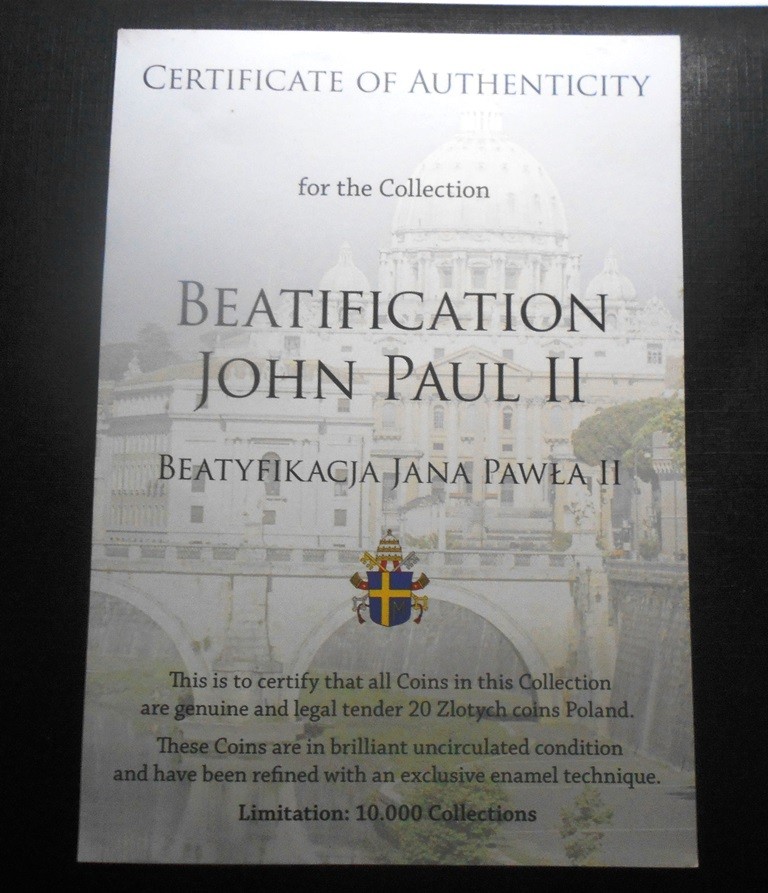 POLAND Set Beatification John Paul II 10 pcs on 20 zlotych coloured