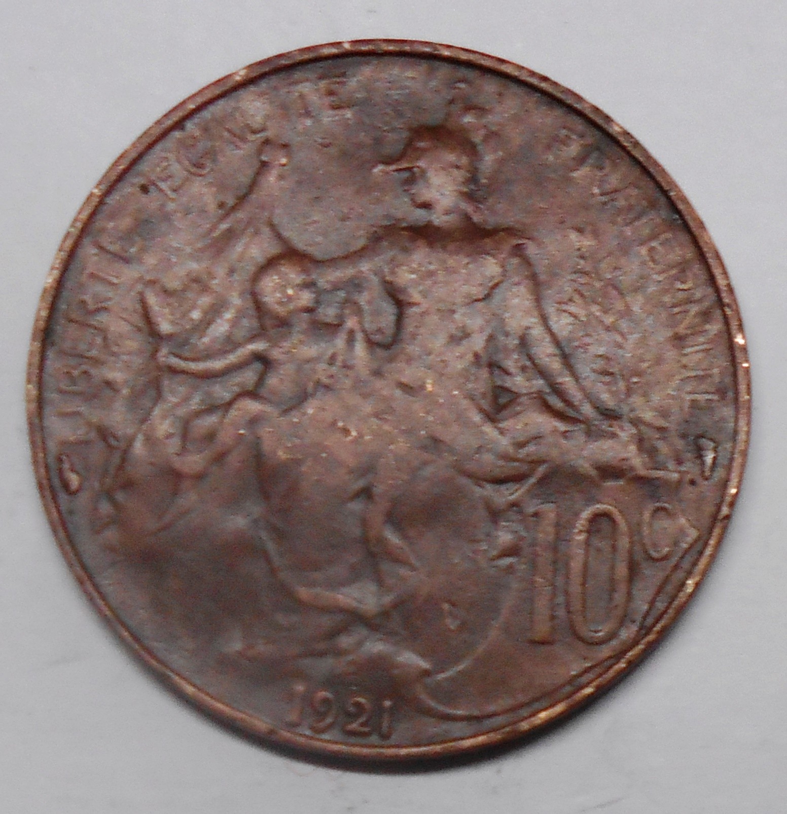 FRANCE 10 Centimes 1921 Br. rare