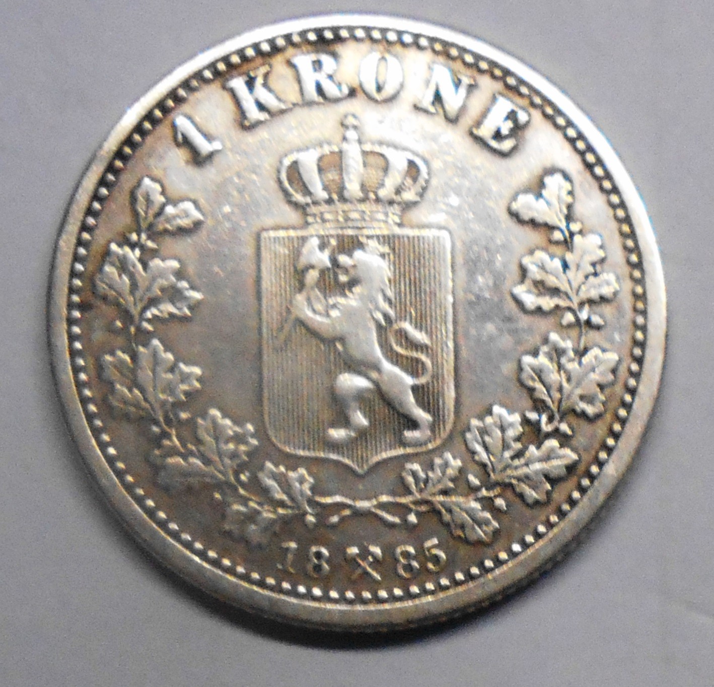 NORWAY 1 Krone 1885 AG Oscar II rare