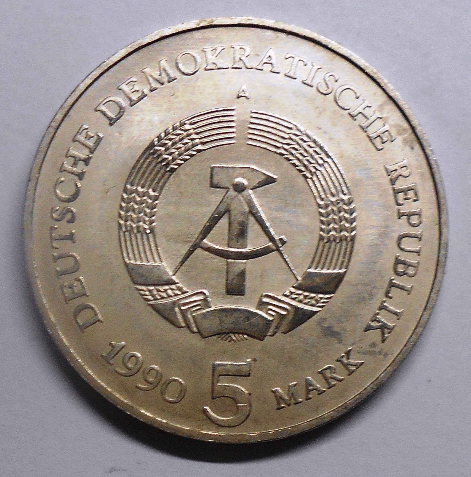 DDR 5 Mark 1990 Brandenburg Gate rare