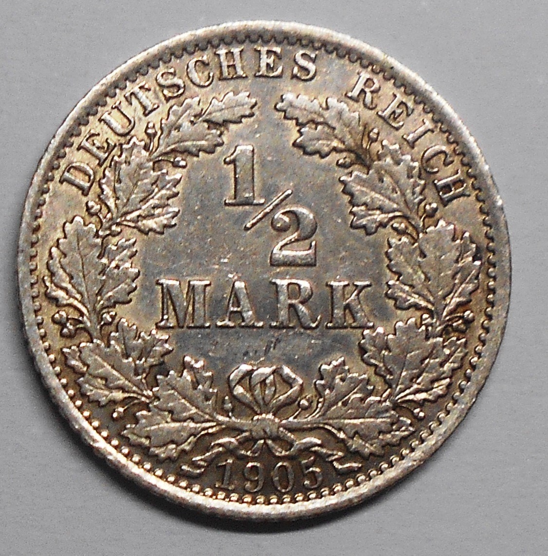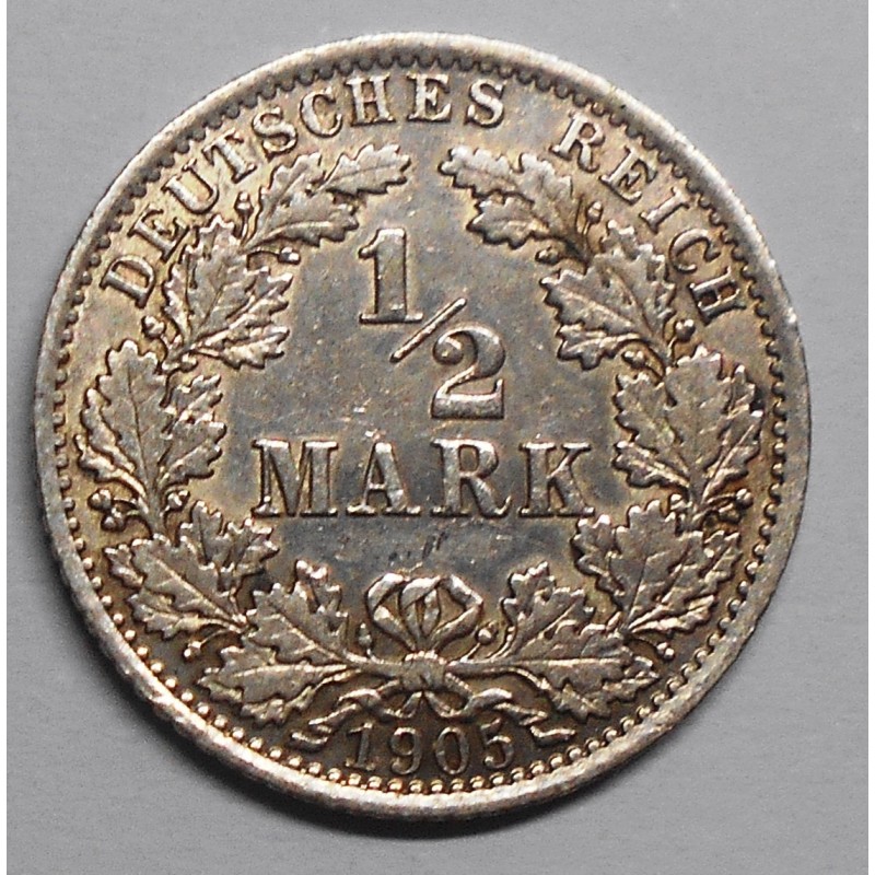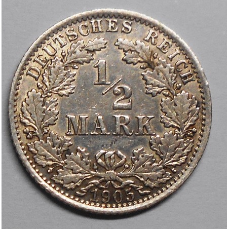 GERMANY EMPIRE 1/2 Mark 1905 A - AG