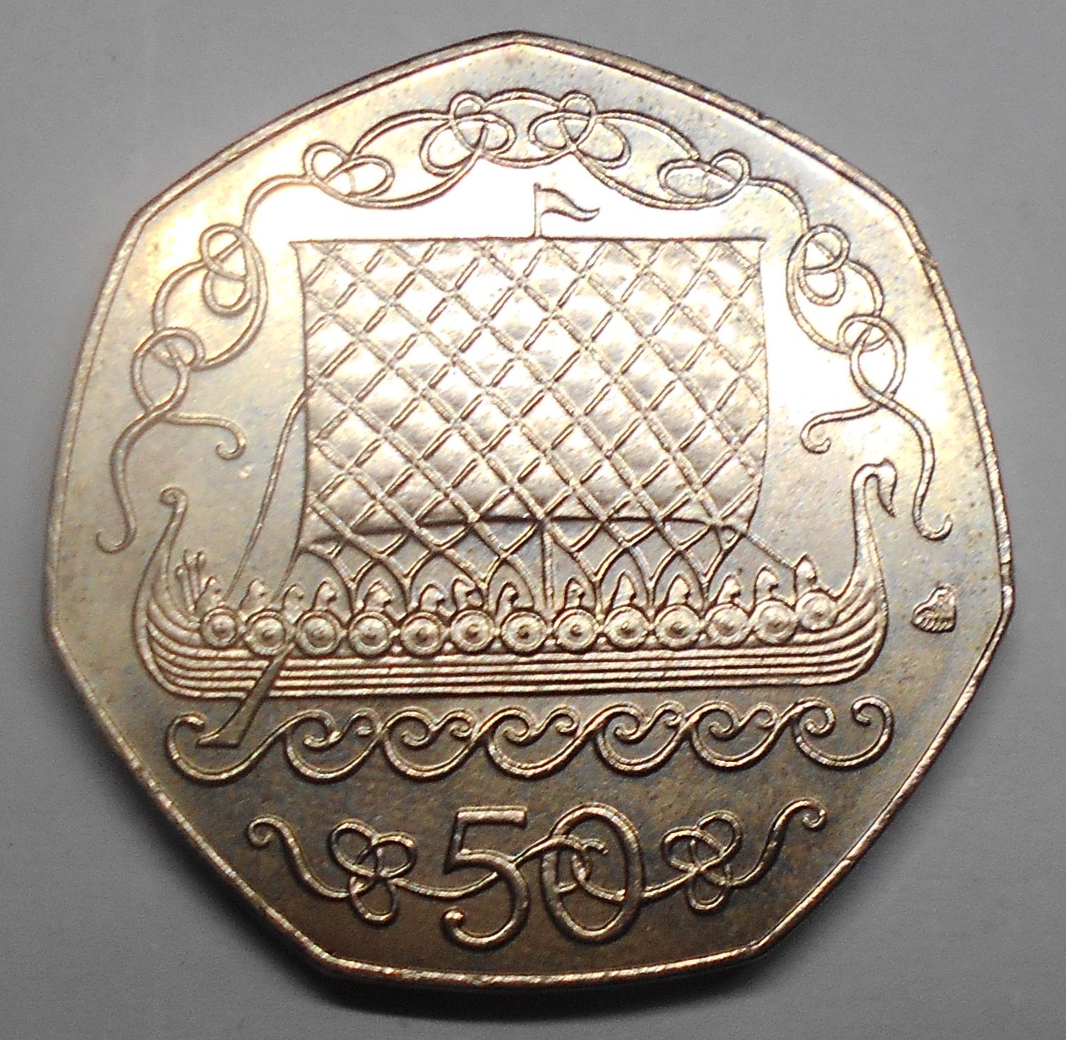 ISLE OF MAN 50 Pence 1982 Viking Longship prive market (Baby crip) rare
