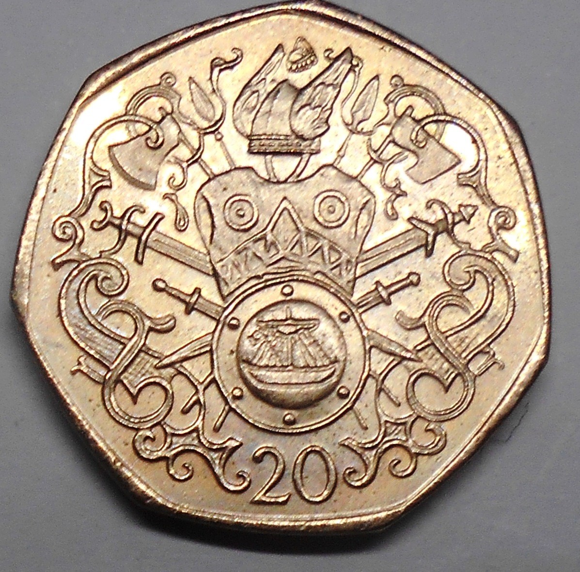 ISLE OF MAN 20 Pence 1982 Viking Arms and Armour prive market (Baby crip)rare