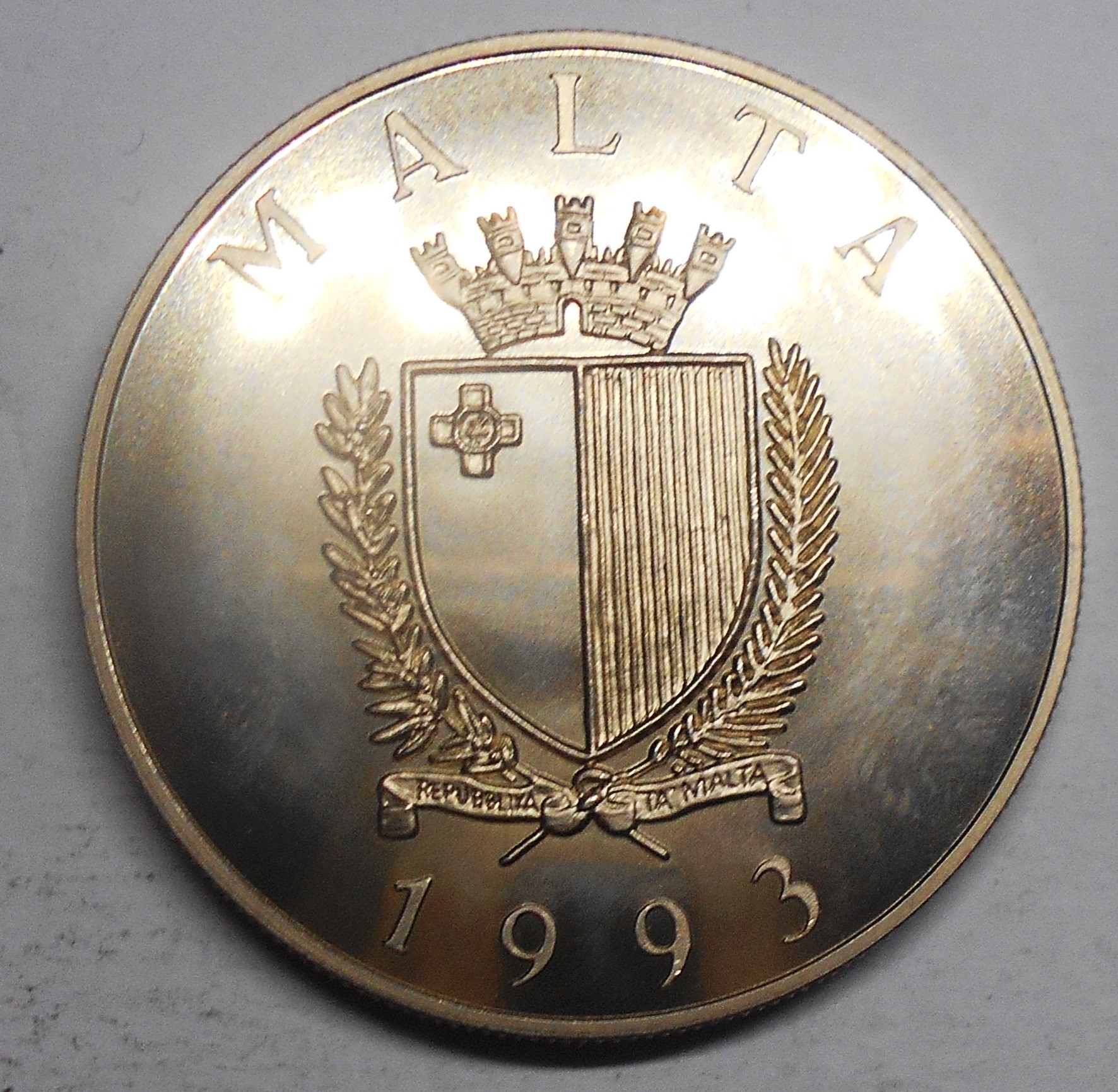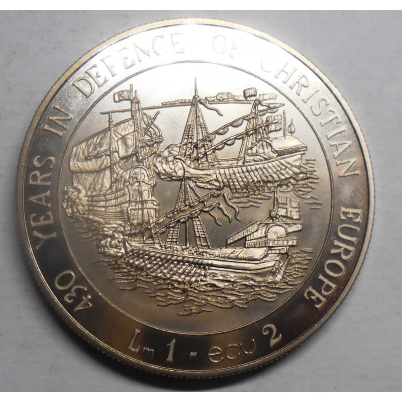 MALTA 1 Lira 1993 (2 Ecu) Defence of Europe rare
