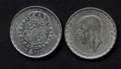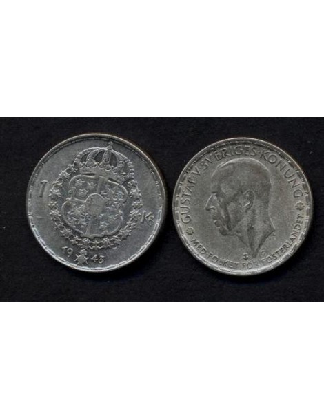 SWEDEN 1 Krona 1943 AG Gustaf V