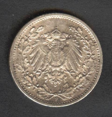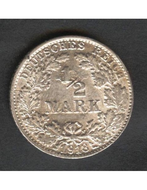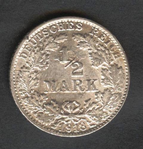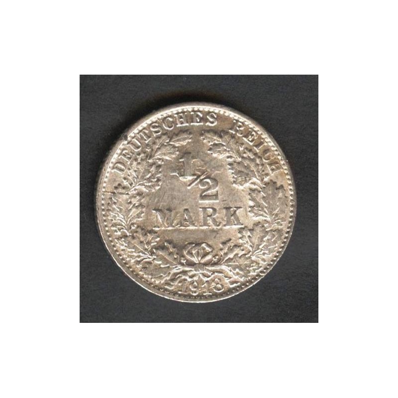 GERMANY EMPIRE 1/2 Mark 1918 F -AG