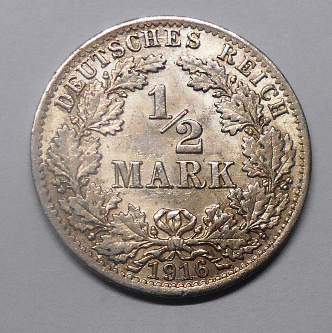 GERMANY EMPIRE 1/2 Mark 1916 A - AG