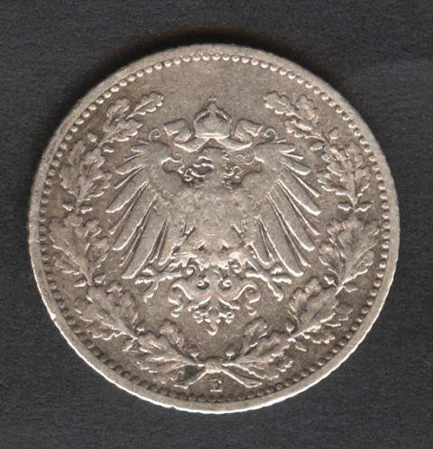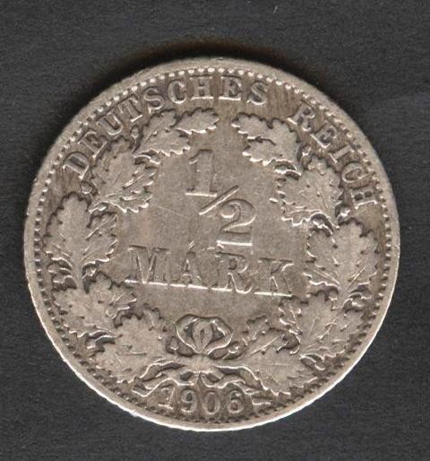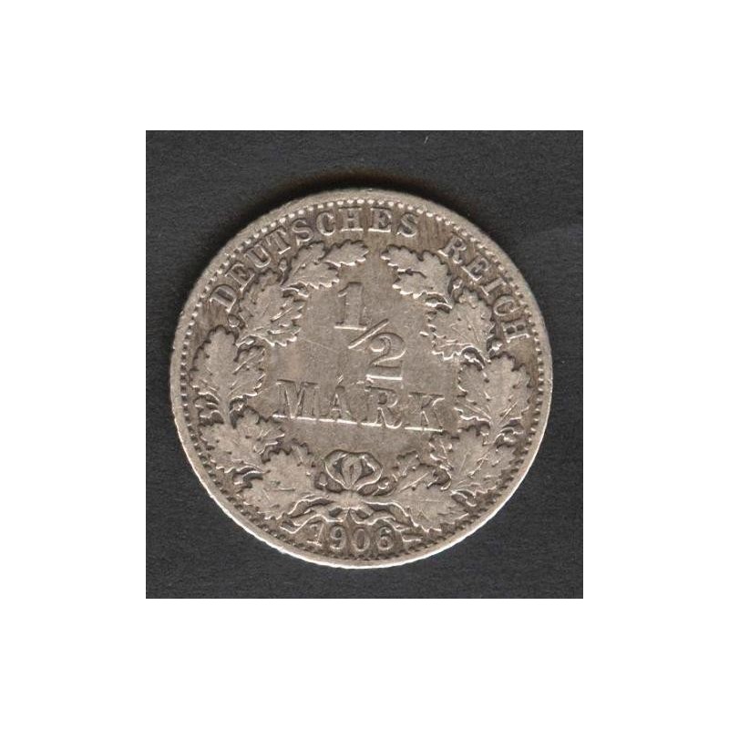 GERMANY EMPIRE 1/2 Mark 1906 E - AG