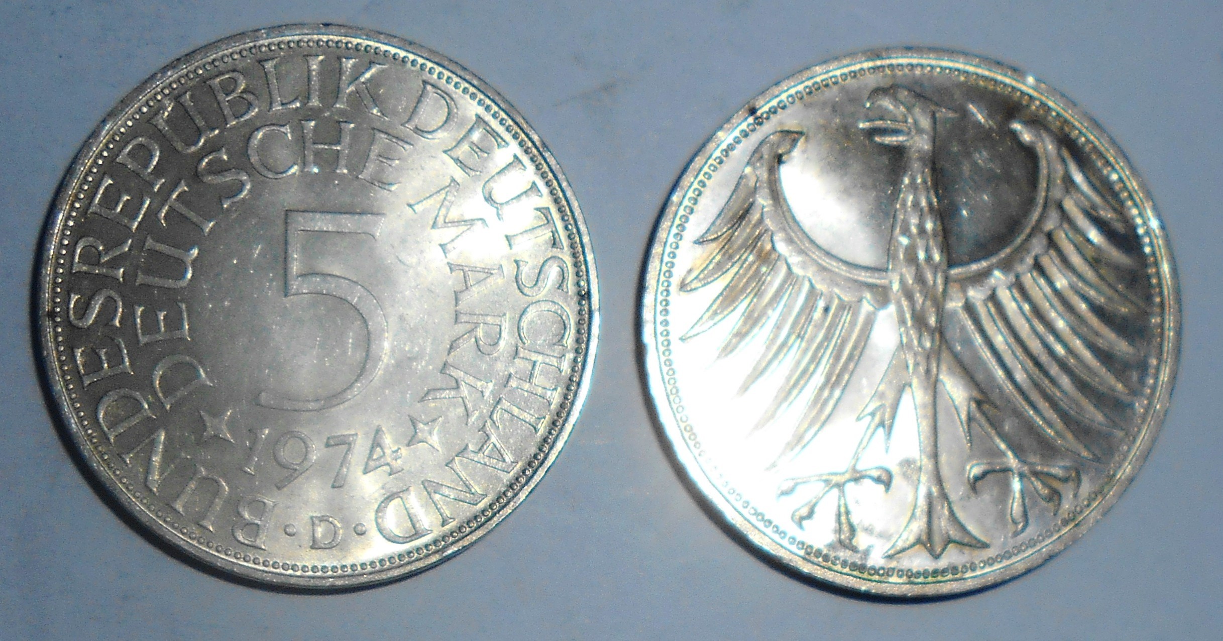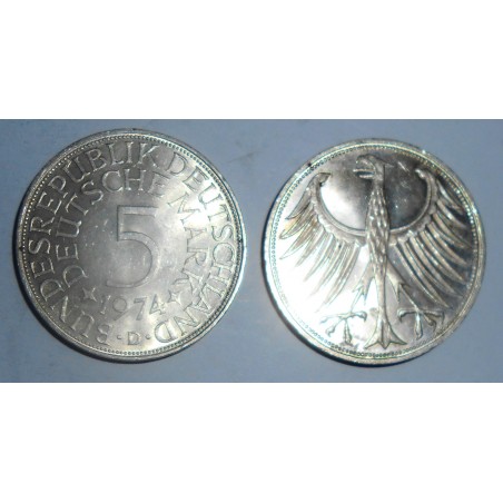 GERMANY FEDERAL REPUBLIC 5 Mark 1974D AG