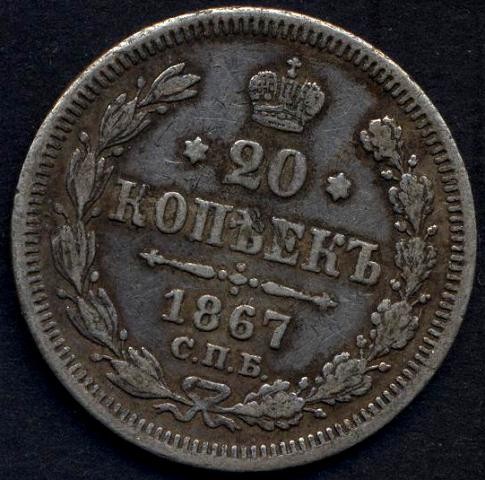 RUSSIA 20 Kopeks 1867 AG