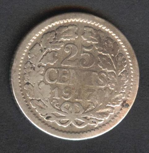 NETHERLANDS 25 Cents 1917 AG