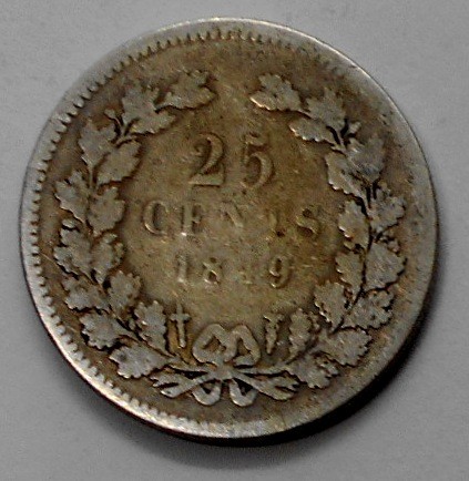 NETHERLANDS 25 Cents 1849 AG