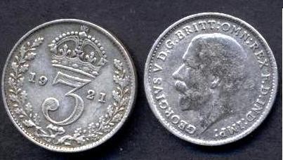 GREAT BRITAIN 3 Pence 1921 AG George V
