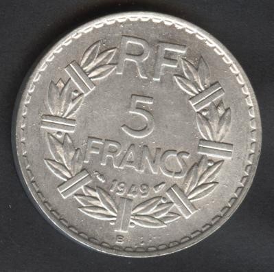 FRANCE 5 Francs 1949 B Lavrillier