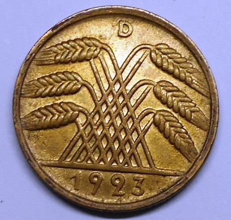 GERMANY WEIMAR REPUBLIC 10 Rentenpfennig 1923 D