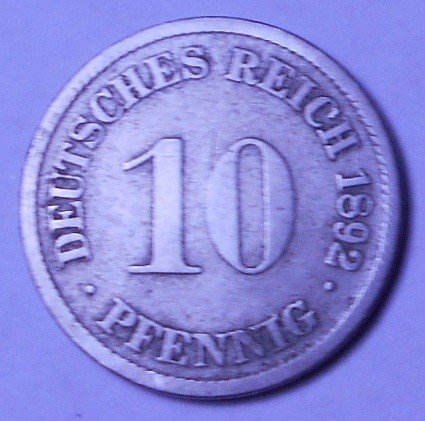 GERMANY EMPIRE 10 Pfennig 1892 D