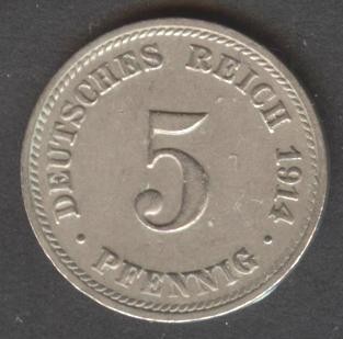 GERMANY EMPIRE 5 Pfennig 1914 D
