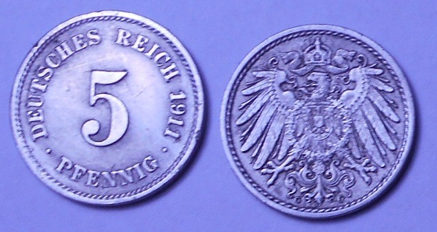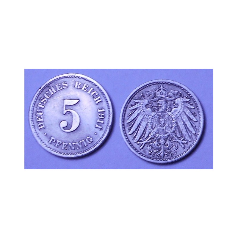 GERMANY EMPIRE 5 Pfennig 1911 G