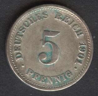 GERMANY EMPIRE 5 Pfennig 1901 D