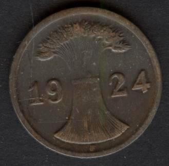 GERMANY WEIMAR REPUBLIC 2 Rentenpfennig 1924 F