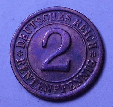 GERMANY WEIMAR REPUBLIC 2 Rentenpfennig 1923 G