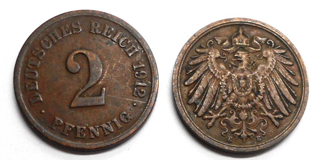 GERMANY EMPIRE 2 Pfennig 1912 E