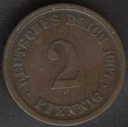 GERMANY EMPIRE 2 Pfennig 1907 E