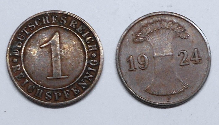GERMANY WEIMAR REPUBLIC 1 Reichspfennig 1924 J
