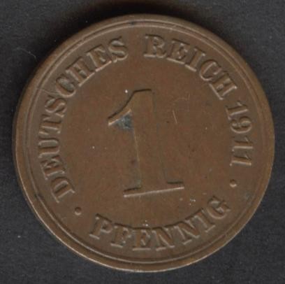 GERMANY EMPIRE 1 Pfennig 1911 D