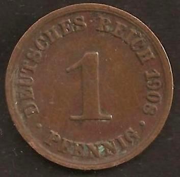 GERMANY EMPIRE 1 Pfennig 1908 A