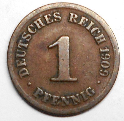 GERMANY EMPIRE 1 Pfennig 1909 F
