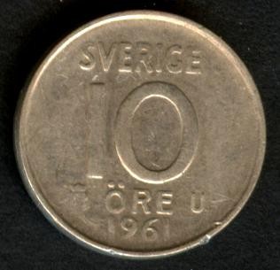 SWEDEN 10 Ore 1961 U AG