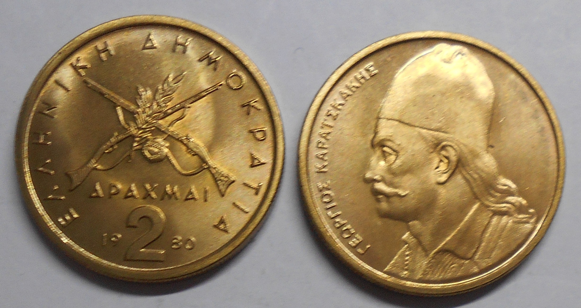 GREECE 2 Drachmai G. Karaiskakis 1980