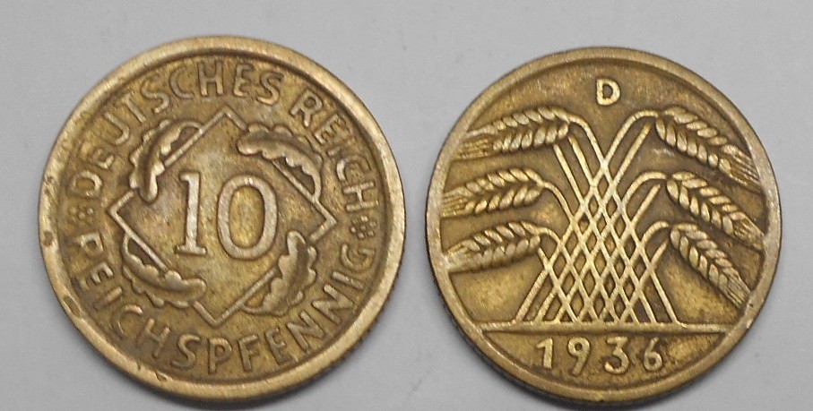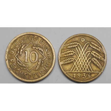 GERMANY WEIMAR REPUBLIC 10 Reichspfennig 1936 D
